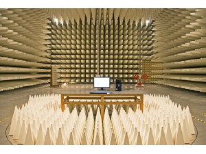 ACTC是專門為汽車零部件輻射發射測試設計的,符合DIN/ISO 11452-2和EN 55025(CISPR 25)的要求。暗室內部鋪設鐵氧體吸波材料,在近似暗室中心高度的位置安裝復合吸波材料。ACTC標準配置中,包括一套常規的高架地板,而反射地面和地板上的吸波材料則為可選配置。標準的ACTC可測試頻率范圍至少在30MHz至18GHz之間。為了確保測試桌的接地平面與屏蔽板之間的電連接,在吸波材料之間安裝了一些配有鈹青銅簧片的導電帶,它們和測試桌一樣是標準配置。