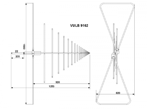 VULB 9162 雙錐對數周期混合天線,是雙錐天線和對數周期天線的復合天線,頻率范圍能覆蓋雙錐天線和對數周期天線的頻率范圍。超寬寬帶天線的使用使得在輻射騷擾測試和場強的測試中,不需