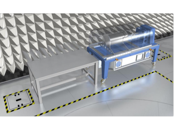 BLUEBOX是通過獨立的控制單元控制,通常設置是使用光纖在EMC暗室外的控制室進行控制。針對BLUEBOX,電磁兼容暗室本身無特殊要求。原則上,只需要一個標準的CE插座,相關的電源接近測試位置即可。此外,電源應使用特殊的射頻濾波器。BLUEBOX能夠適應各種各樣的附件以便固定EUT,使EUT可以直接固定在工作臺上,或用法蘭直接安裝到傳動軸。也有一個完整的鋼制導軌系統,靈活地夾緊EUT。