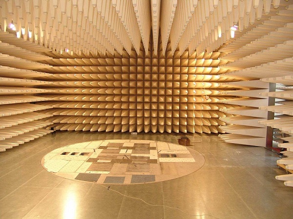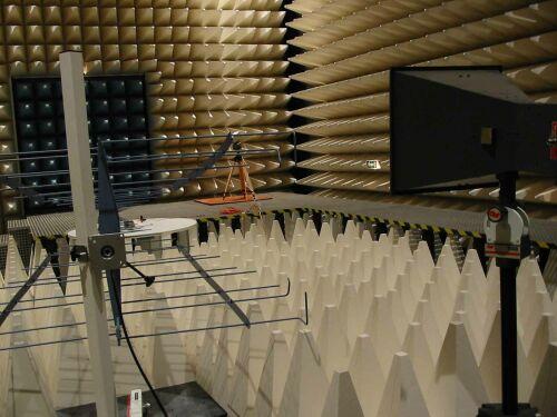 電波暗室是主要用于模擬開闊場,同時用于輻射無線電騷擾(EMI)和輻射敏感度(EMS)測量的密閉屏蔽室。電波暗室的尺寸和射頻吸波材料的選用主要由受試設備(EUT)的外行尺和測試要求確定,分3m法暗室、5m法暗室、10m法暗室。在屏蔽室的天花板和四面墻貼上吸波材料,地面的吸波材料采用活動式鋪設,即構成EMC實驗室。該EMC暗室(實驗室)為十米法半電波暗室,在30MHz至18GHz的頻率范圍內,在3米測試距離擁有2米靜區,10米測試距離擁有3米或更大靜區,該暗室滿足FCC、CE和VCCI對十米法暗室的認證、測試要求。