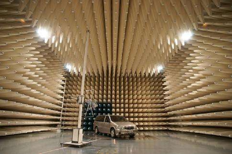 全電波暗室減小了外界電磁波信號對測試信號的干擾,同時電磁波吸波材料可以減小由于墻壁和天花板的反射對測試結果造成的多徑效應影響,適用于發射、靈敏度和抗擾度實驗。實際使用中,如果屏蔽體的屏蔽效能能夠達到80dB~140dB,那么對于外界環境的干擾就可以忽略不計,在全電波暗室中可以模擬自由空間的情況。同其它兩種測試場地相比,全電波暗室的地面、天花板和墻壁反射最小、受外界環境干擾最小,并且不受外界天氣的影響。它的缺點在于受成本制約,測試空間有限。