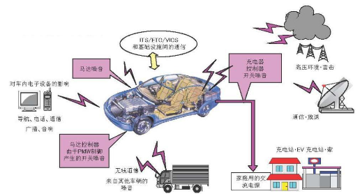 隨著眾多汽車電子產品數量的增加,工作頻率的提高,功率的增大,使得汽車工作環境中充斥著電磁波,導致電磁干擾問題日益突出,輕則影響汽車電子設備的正常工作,造成駕駛不便,重則損壞相應的電器元件,危及車乘人員的生命安全。電子技術在汽車上的大量應用,對汽車的經濟性、安全性、舒適性等方面起著非常重要的作用。汽車電子設備工作所構成的電磁環境具有復雜性和多變性的特點,這意味著車載系統所受到的干擾來源比較廣泛。按照電磁干擾的來源分類,可分為靜電干擾、車外干擾、車內干擾。
