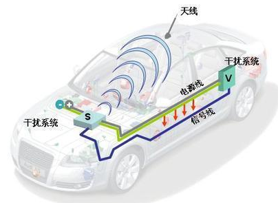 車內干擾是指汽車電子設備工作時內部的相互干擾,如發動機的點火系統、閃光器、觸點式電磁振動電喇叭、雨刮器、儀表系統等均會產生一定的傳導干擾和輻射干擾電磁波。傳導干擾通過汽車導線直接輸入無線電設備和電子設備內部,而輻射干擾則是在空間傳播,通過天線(如點火系高壓線就相當于天線)輸入無線電設備內部,進而影響電子電器設備的正常工作。