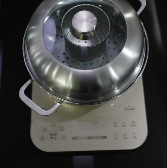此外,美的恒溫爐有著超大188mm線圈盤,可以提供200W-2100W持續不間斷加熱的恒勻火技術,更能支持304復合厚底多用鍋具。