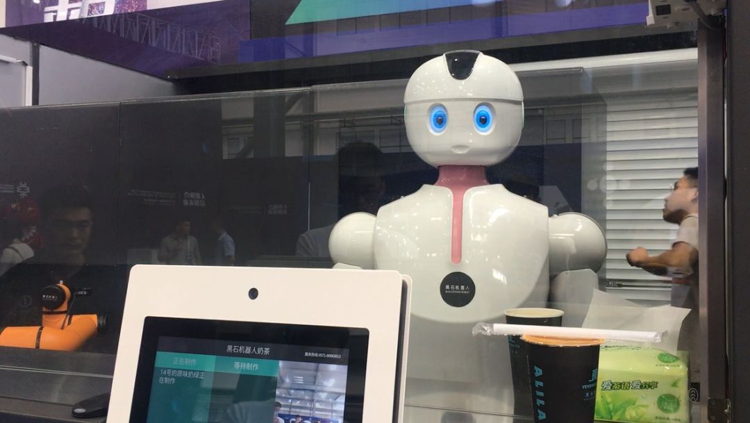 “請問你想喝點什么……您選擇的是原味奶茶,請選擇屏幕上方的二維碼進行支付……”在主動詢問顧客想喝什么后,奶茶機器人細致地問是否需要加糖加冰,90秒后,一杯奶茶就調制完成,通過機械手遞到了窗口。機器人還會通過人臉識別和購買數據記錄下顧客的喜好,便于下一次點單。有意思的是,顧客還可以通過3D打印,把自己想要的圖像變成奶茶上的拉花。