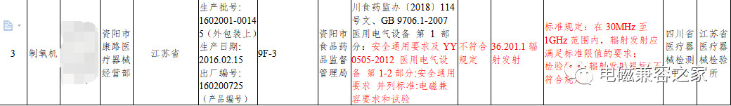 其中某制氧機廠家生產的制氧機批次產品在輻射發射項目中在30MHz至1GHz范圍內,輻射發射應滿足標準限值的要求;檢驗數據:輻射發射超標(不符合規定)