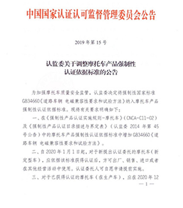 近期,認監委對摩托車(含電摩和電輕摩)的電磁抗干擾提出了具體要求,3C認證時必須嚴格GB34660執行,而要求檢測機構在今年底之前實施細則和檢測條件。