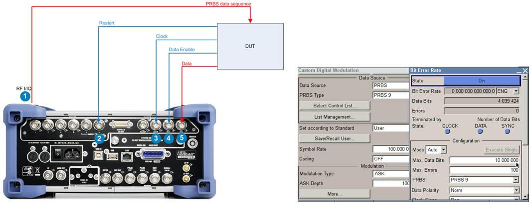 接收靈敏度是指OBU能夠正確接收小信號的能力,即:滿足規定誤碼率情況下,能夠接收最小信號功率。國標規定接收靈敏度要高于喚醒靈敏度,這樣OBU被喚醒后,即使接收的信號功率發生波動,也不會造成通信中斷,保證交易穩定性。接收靈敏度并非越高越好,容易引入更多的干擾。通過矢量信號源SMBV100A選件,可以通過Data List和Control List進行FM0編碼數據的導入,完成接收靈敏度測試。關于接收機誤碼率測試,可以使用SMBV100A-K80來完成,具體的測試框圖如下: